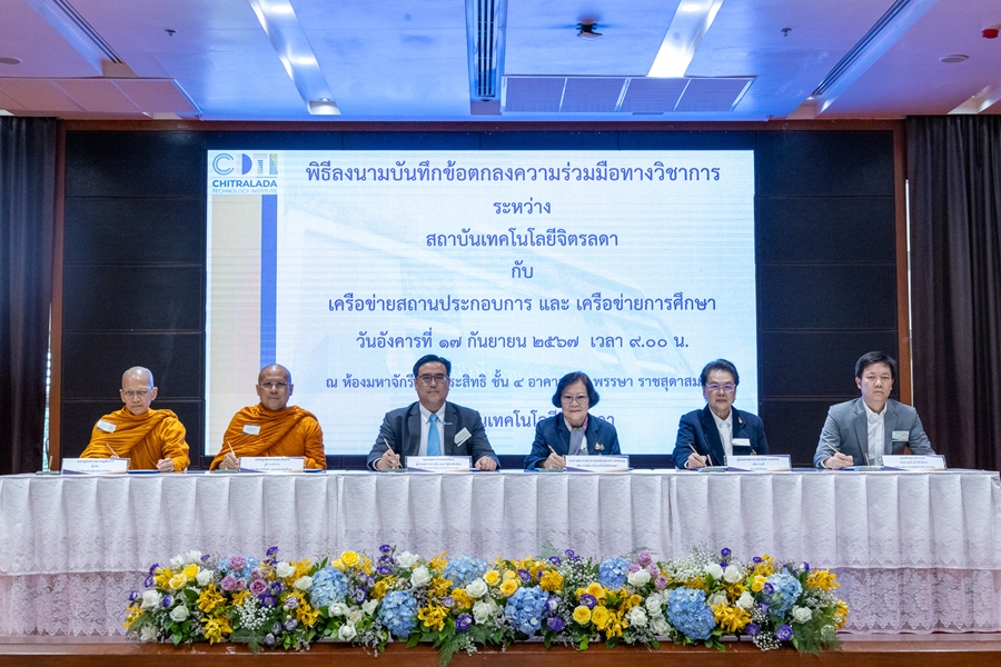 รองศาสตราจารย์ ดร.คุณหญิงสุมณฑา พรหมบุญ อธิการบดีสถาบันเทคโนโลยีจิตรลดา ร่วมลงนามบันทึกข้อตกลงความร่วมมือทางวิชาการ (MOU) ระหว่าง สถาบันเทคโนโลยีจิตรลดา กับสถานประกอบการ จำนวน 3 แห่ง ได้แก่ สถาบันกันตนา บริษัท พลังงานบริสุทธิ์ จำกัด (มหาชน) บริษัท เดลต้า อีเลคโทรนิคส์ (ประเทศไทย) จำกัด (มหาชน) และสถานศึกษาจำนวน ๑๖ แห่ง ได้แก่ โรงเรียนวัดไผ่ดำ แผนกสามัญศึกษา โรงเรียนอุทัยวิทยาคม วิทยาลัยเทคนิคอุทัยธานี โรงเรียนหนองขาหย่างวิทยา โรงเรียนพระสุธรรมยานเถระวิทยา โรงเรียนหนองบัว