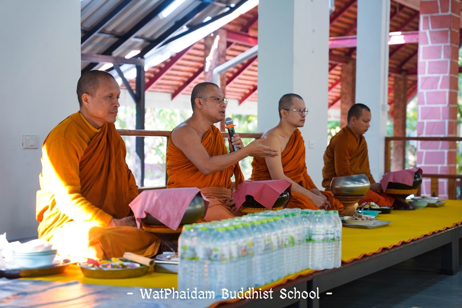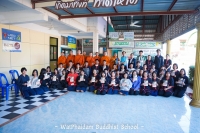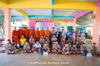 พระครูปลัด ปราโมทย์ สิริเตโช ผู้อำนวยการโรงเรียน, พระมหาพงศกร ฐานงฺกโร,ดร. รองผู้อำนวยการโรงเรียน และสามเณรนักเรียน จำนวน ๗ รูป
