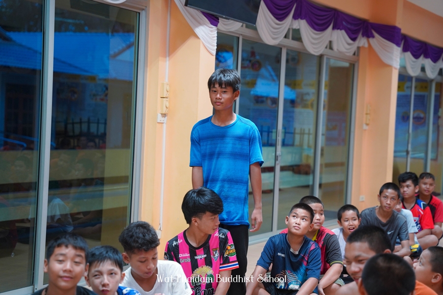 พระอาจารย์พบปะสามเณร อบรมเรื่องกายบริหาร