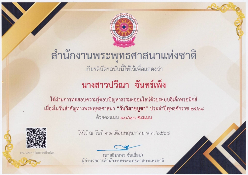 ๑๑-๐๕-๖๘ - ด้ผ่านการทดสอบความรู้ตอบปัญหาธรรมะออนไลน์"วันวิสาขบูชา" |