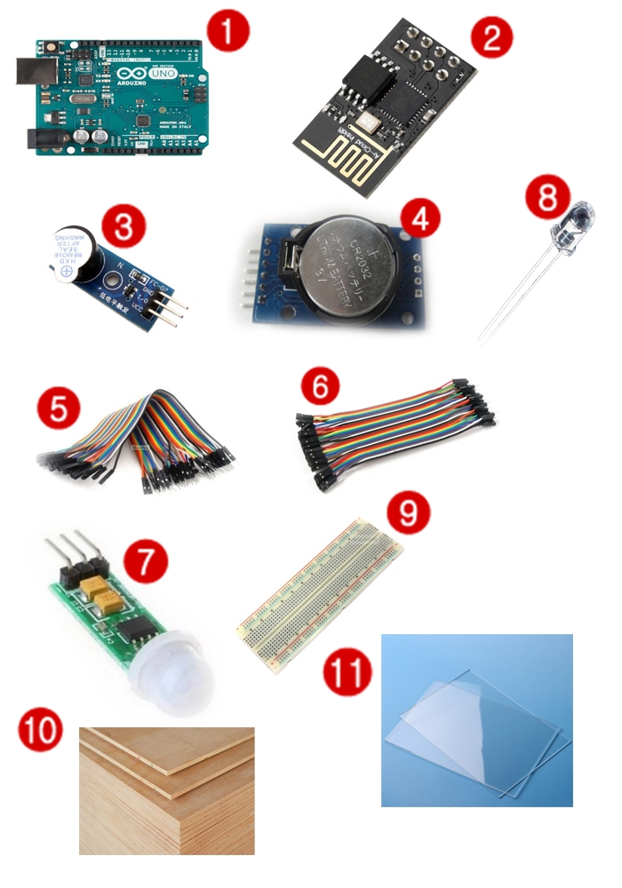 คุณสมบัติ • ไมโครคอนโทรลเลอร์ ATmega328 • แรงดันไฟฟ้าเข้า 7 – 12 V • 14 Digital I / O Pins (6 เอาท์พุท PWM) • อินพุตแบบอนาล็อก • หน่วยความจำแฟลช 32KB (0.5KB สำหรับบูตโหลด) • SRAM2KB 7. EEPROM 1KB • ความเร็วนาฬิกา 16 Mhz ๒.โมดูล Wi-Fi (ภาพที่ ๒) เป็นโมดูลที่ช่วยให้ไมโครคอนโทรลเลอร์เชื่อมต่อกับ เครือข่ายข้อมูลในแบบไร้สายผ่าน Wi-Fi ได้ง่ายขึ้น เนื่องจากตัวโมดูลนี้จะทำหน้า ที่จัดการขั้นตอนต่างๆ ในการเชื่อมต่อกับเครือข่ายข้อมูล เพียงได้รับคำสั่งในรูปแบบ AT command จากไมโครคอนโทรลเลอร์หรือคอมพิวเตอร์ ทำให้การ พัฒนาโปรแกรมทางฝั่งไมโครคอนโทรลเลอร์ที่เกี่ยวข้องกับการเชื่อมต่อเครือข่าย ข้อมูลผ่าน Wi-Fi ทำให้ง่ายขึ้นมาก และที่สำคัญอีกประการหนึ่งคือ โมดูลนี้ มีราคาไม่สูงมาก เมื่อเทียบกับความสามารถของมัน คุณสมบัติทางเทคนิค • มีหน่วยความจำแฟลชแบบอนุกรมความจุ ๔ เมกะบิต • กำหนดการทำงานด้วยการป้อนคำสั่ง AT command ผ่านขาสื่อสารข้อมูลอนุกรม UART • ใช้เวลา ๒ มิลลิวินาทีในการเชื่อมต่อและถ่ายทอดแพ็กเก็ตข้อมูล • ใช้กระแสไฟฟ้าสูงสุด 215mA ที่อัตราการถ่ายทอดข้อมูล ๑ เมกะบิตต่อวินาที ไฟเลี้ยง 3.3V และใช้ร้อยกว่า 0.1mW เมื่อทำงานในโหมดสแตนด์บาย