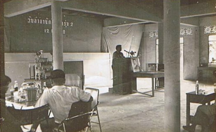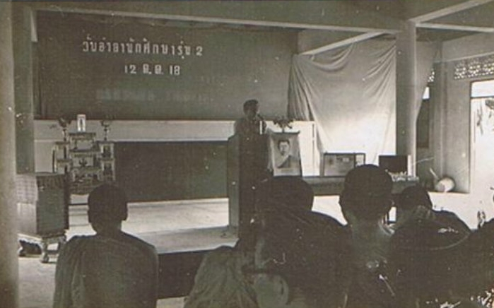 วันที่ ๑๒ สิงหาคม ๒๕๑๘ คุณครูสนัด โพธิ์วัง ครูใหญ่ของ โรงเรียน ก.ศ.วัดไผ่ดำกล่าวสัมโมนียกถาแด่นักศึกษาทุกรูป |