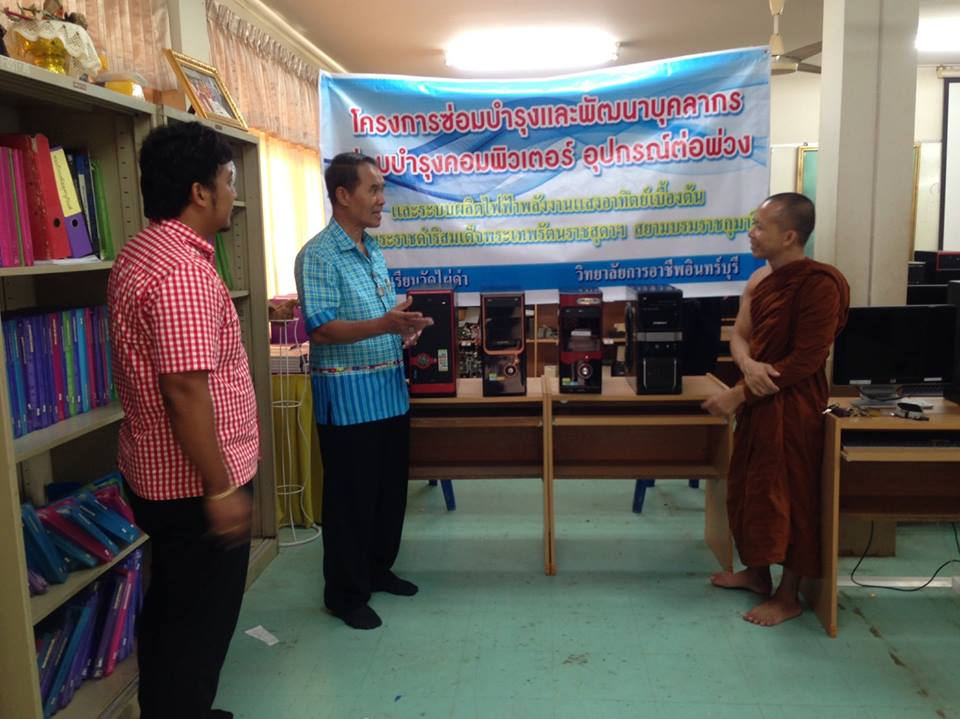 ภาพรับมอบคอมฯและนักศึกษาจากวิทยาลัยการอาชีพ มาซ่อมแอร์ให้กับทาง