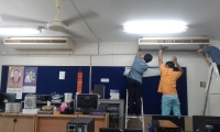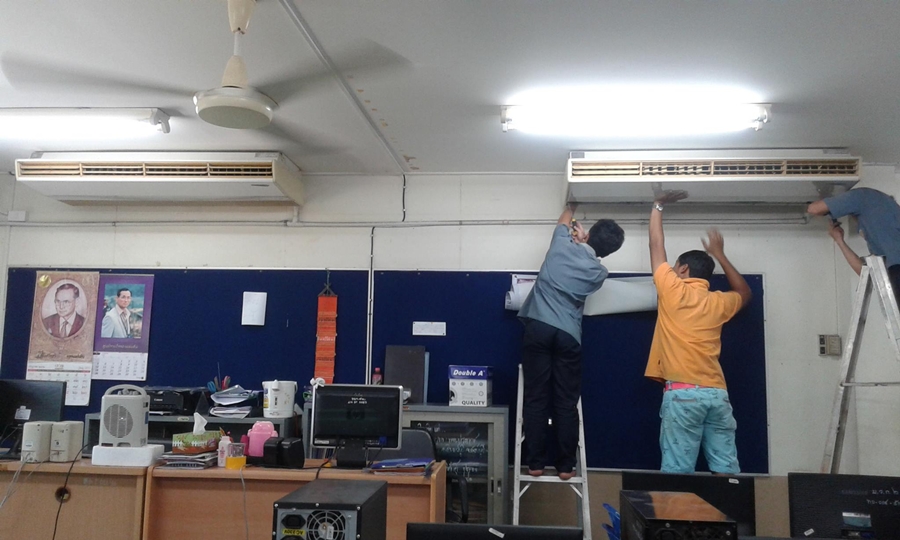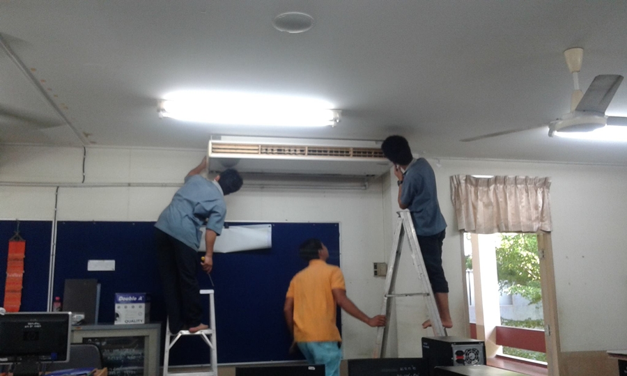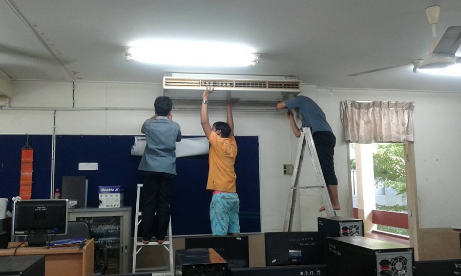 ภาพนักศึกษามาซ่อมแอร์ให้กับทางโรงเรียน