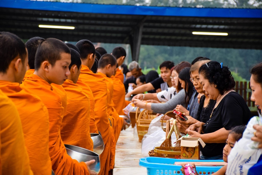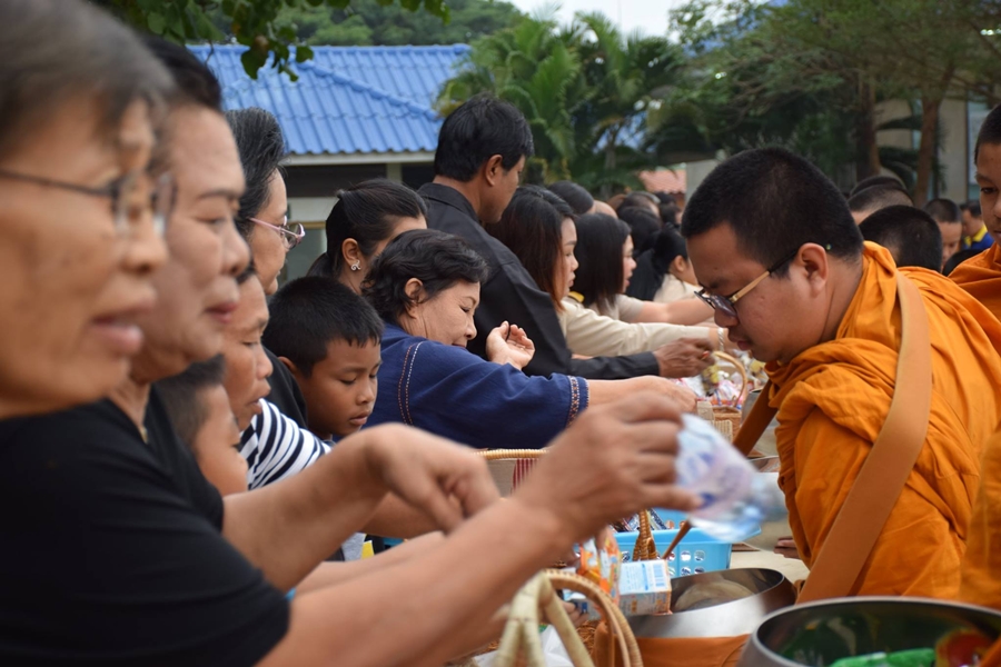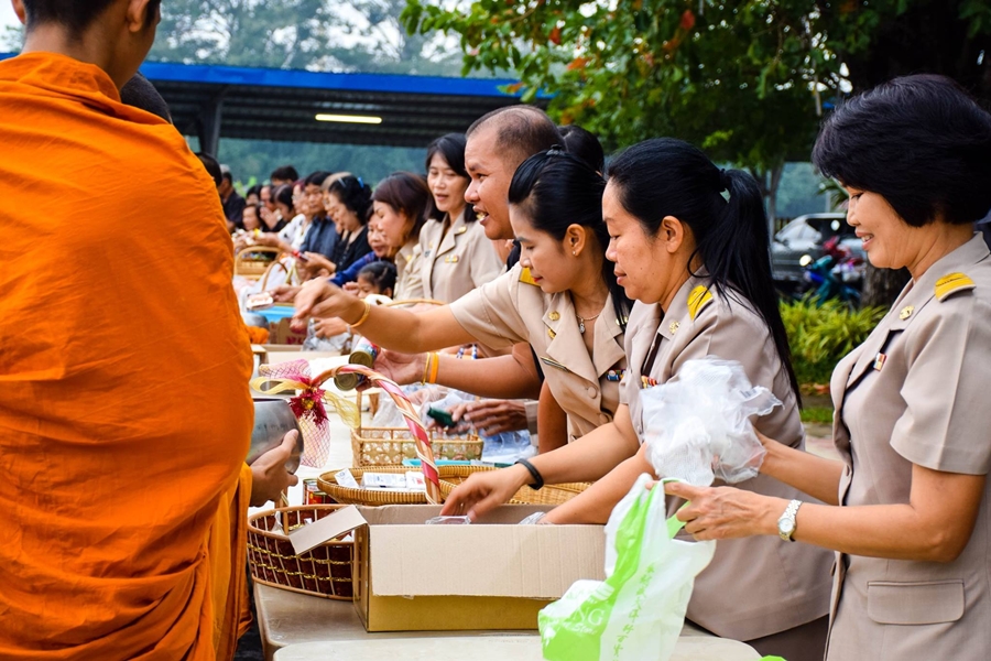 "อ.บ.ต.ท่างาม จัดพิธี ตักบาตรอาหารแห้ง