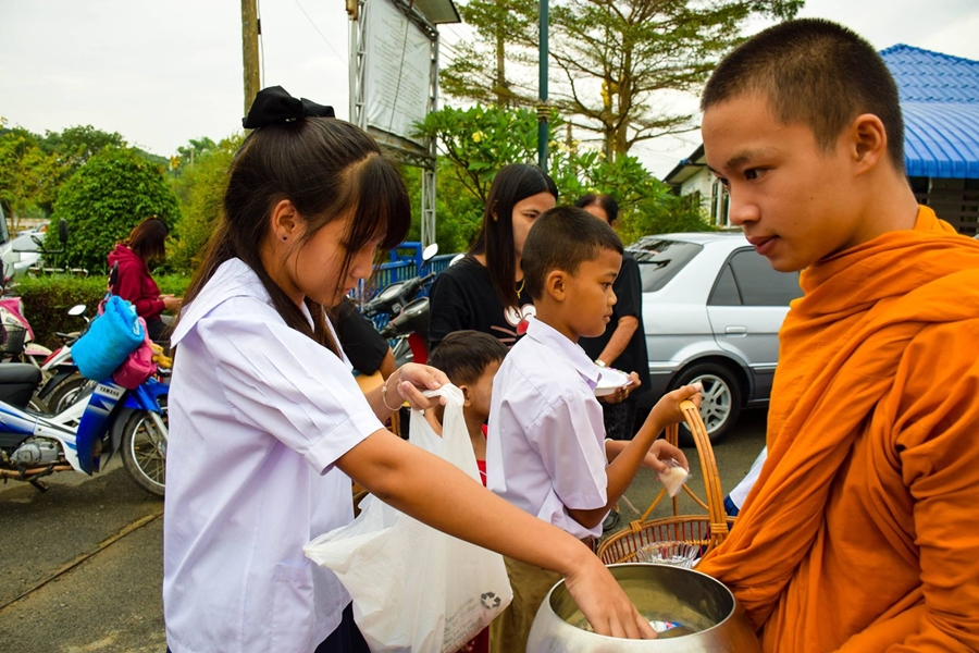 ๑๐-๐๑-๖๐ พระสงฆ์ สามเณรโรงเรียนวัดไผ่ดำ บิณฑบาตร อ.บ.ต.ท่างาม
