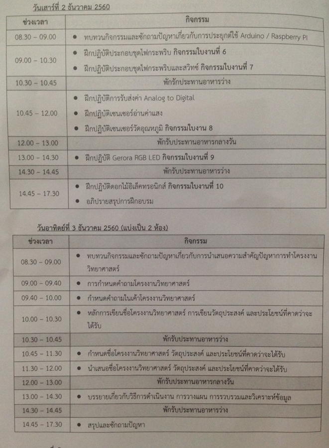 วันที่ ๑-๒-๓ ธ.ค. ๒๕๖๐ เข้าค่ายอบรมการเขียนโปรแกรมคอมพิวเตอร์ โดยคณะเทคโนโลยีราชมงคลธัญบุรี คลอง ๖ ปทุมธานี