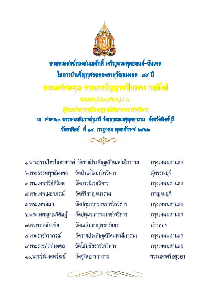 ๑๔-๐๗-๖๒ "อายุวัฒนมงคล ๘๔ปี พระเทพปัญญากวี"