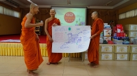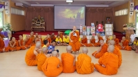 จากนั้นรับมอบผ้าป่าเพื่อการศึกษา และอุปกรณ์ของใช้ เพื่อความเป็นอยู่ของสามเณร โดยคณะศิษย์ในพระเดช พระคุณพระเทพปัญญากวี (บรรจง กลฺลิโต) ผู้ช่วยเจ้าอาวาส วัดมกุฏกษัตริยาราม ราชวรวิหาร เนื่องในโอกาสเจริญอายุวัฒนมงคล ๘๕ ปี