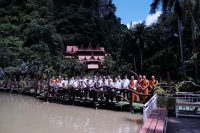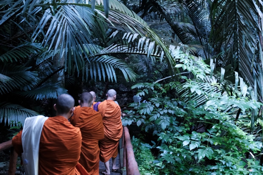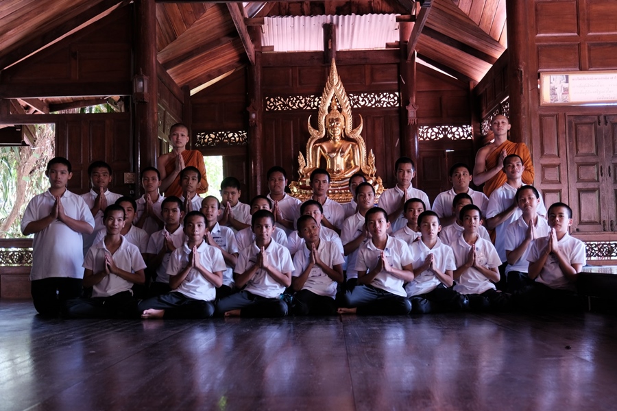 สร้างด้วยไม้สัก และไม้มะค่า มีทางเดินเรียบสระน้ำเพื่อไปยังตัววัด ฉากหลังเป็นเขาหินปูนสูงตระหง่าน และมีธรรมชาติที่สวยงาม