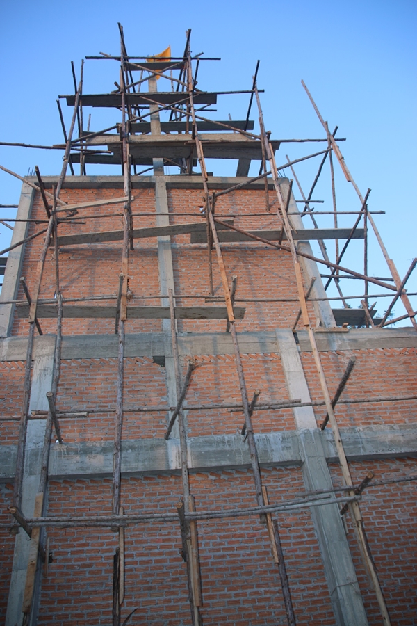 และเริ่มก่ออิฐเก็บผนังรอบอาคาร.....