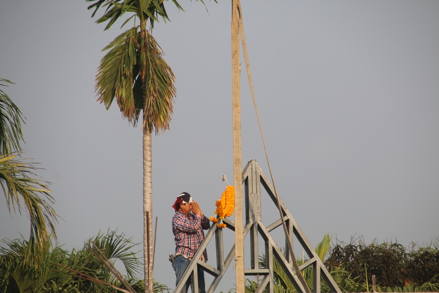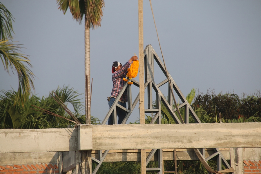 ล่าสุดทีมงานช่างลูกหลานบ้านไผ่ดำ ติดตั้งวางโครงสร้างหลังคา