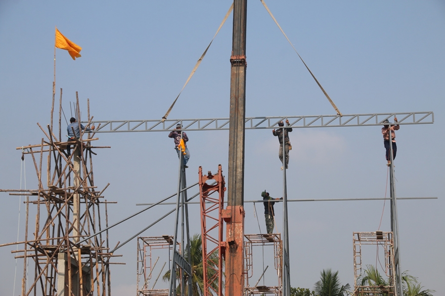 หน้างาน การนวกรรมศาลามีความคืบหน้าเป็นไปแผนงานที่วางกันไว้ทุกจุด