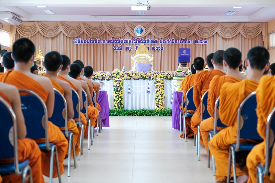 พระเดชพระคุณพระเทพญาณวิศิษฏ์ ประธานคณะกรรมการสถานศึกษา โรงเรียนวัดไผ่ดำ แผนกสามัญศึกษา เมตตาเป็นประธานในพิธีมอบใบประกาศนียบัตรแก่สามเณรนักเรียนผู้สำเร็จการศึกษาชั้นสูงสุด ของโรงเรียนวัดไผ่ดำ แผนกสามัญศึกษา ประจำปีการศึกษา ๒๕๖๓ จำนวน ๑๘ รูป และมอบทุนการศึกษาแก่สามเณรผู้มีผลการเรียนดี ลำดับที่ ๑-๓ ของทุกระดับชั้น . จากนั้นได้มีกิจกรรมกล่าวแสดงความรู้สึกและมุทิตาจิต โดยตัวแทนสามเณรนักเรียน และตัวแทนครู ทั้งนี้ สามเณรนักเรียน มวก.๒ รุ่นที่ ๒๘ มิตรร่วมฝัน ได้น้อยถวายปัจจัย สมทบทุนผ้าป่าจัดซื้อยานพาหนะ แด่วัดกฤษณเวฬุพุทธาราม เป็นจำนวน ๑๐,๐๐๐ บาท |