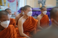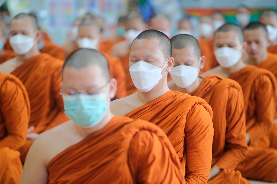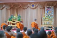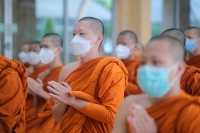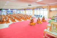 พระภิกษุ สามเณร และบุคลากรโรงเรียนวัดไผ่ดำ แผนกสามัญศึกษา สวดมนต์ทำวัตรค่ำ และเจริญพระพุทธมนต์-เจริญจิตภาวนา