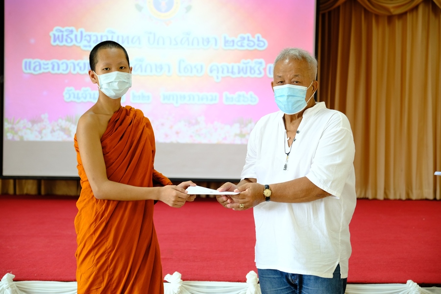ในโอกาสนี้ ได้มอบทุนการศึกษาประเภท "ทุนเรียนดี" แก่สามเณรนักเรียนผู้มีผลการเรียนดีอันดับที่ ๑-๒-๓ ของแต่ละระดับชั้น ในปีการศึกษา ๒๕๖๕
