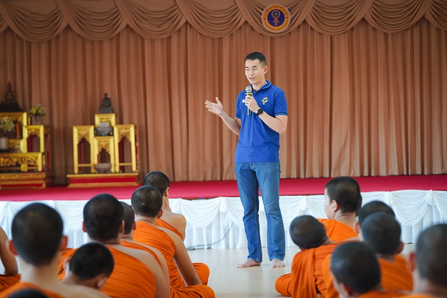 ศิษย์เก่าโรงเรียนวัดไผ่ดำ แผนกสามัญศึกษา รุ่นที่ ๒๐ (มิ่งไมตรี) พบปะน้องๆ สามเณรนักเรียน ถวายข้อคิด ประสบการณ์ชีวิต การเรียน การทำงานในสายวิชาชีพข้าราชการทหาร แก่น้องๆ สามเณร