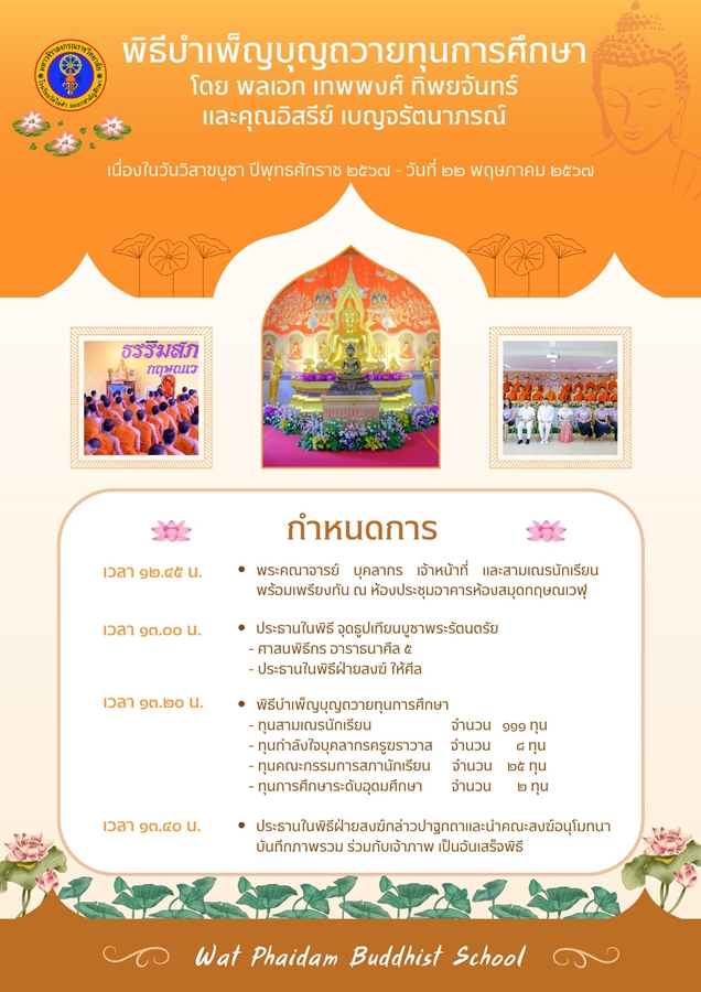 พิธีบำเพ็ญบุญถวายทุนการศึกษา เนื่องในวันวิสาขบูชา ๒๕๖๗