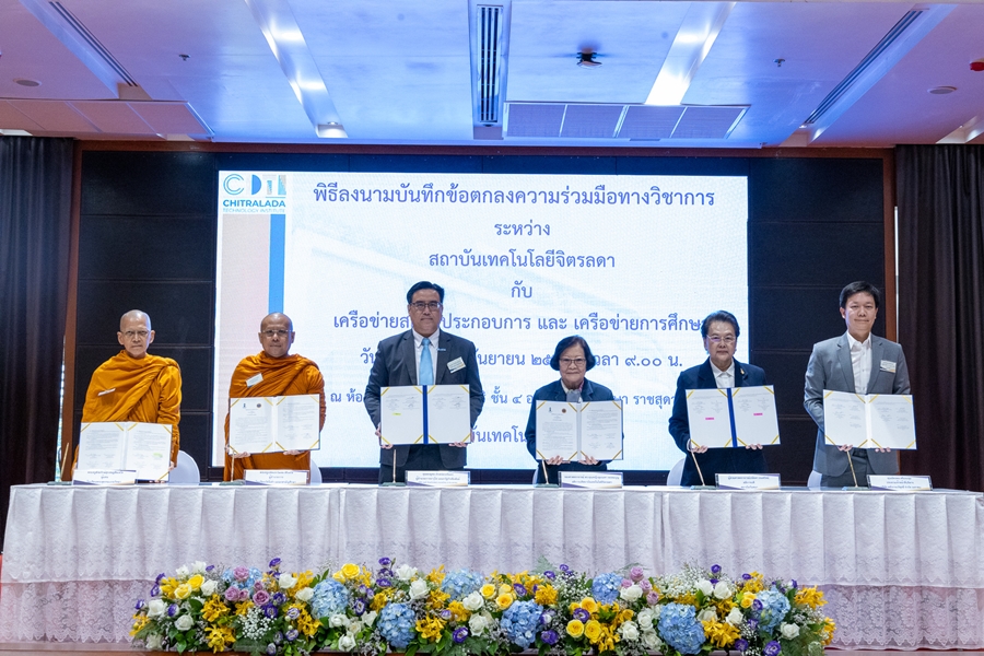 รองศาสตราจารย์ ดร.คุณหญิงสุมณฑา พรหมบุญ อธิการบดีสถาบันเทคโนโลยีจิตรลดา ร่วมลงนามบันทึกข้อตกลงความร่วมมือทางวิชาการ (MOU) ระหว่าง สถาบันเทคโนโลยีจิตรลดา กับสถานประกอบการ จำนวน 3 แห่ง ได้แก่ สถาบันกันตนา บริษัท พลังงานบริสุทธิ์ จำกัด (มหาชน) บริษัท เดลต้า อีเลคโทรนิคส์ (ประเทศไทย) จำกัด (มหาชน) และสถานศึกษาจำนวน ๑๖ แห่ง ได้แก่ โรงเรียนวัดไผ่ดำ แผนกสามัญศึกษา โรงเรียนอุทัยวิทยาคม วิทยาลัยเทคนิคอุทัยธานี โรงเรียนหนองขาหย่างวิทยา โรงเรียนพระสุธรรมยานเถระวิทยา โรงเรียนหนองบัว