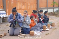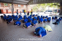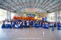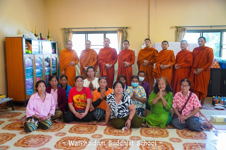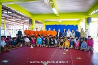 พระครูปลัด ปราโมทย์ สิริเตโช ผู้อำนวยการโรงเรียน, พระมหาพงศกร ฐานงฺกโร,ดร. รองผู้อำนวยการโรงเรียน และสามเณรนักเรียน จำนวน ๗ รูป