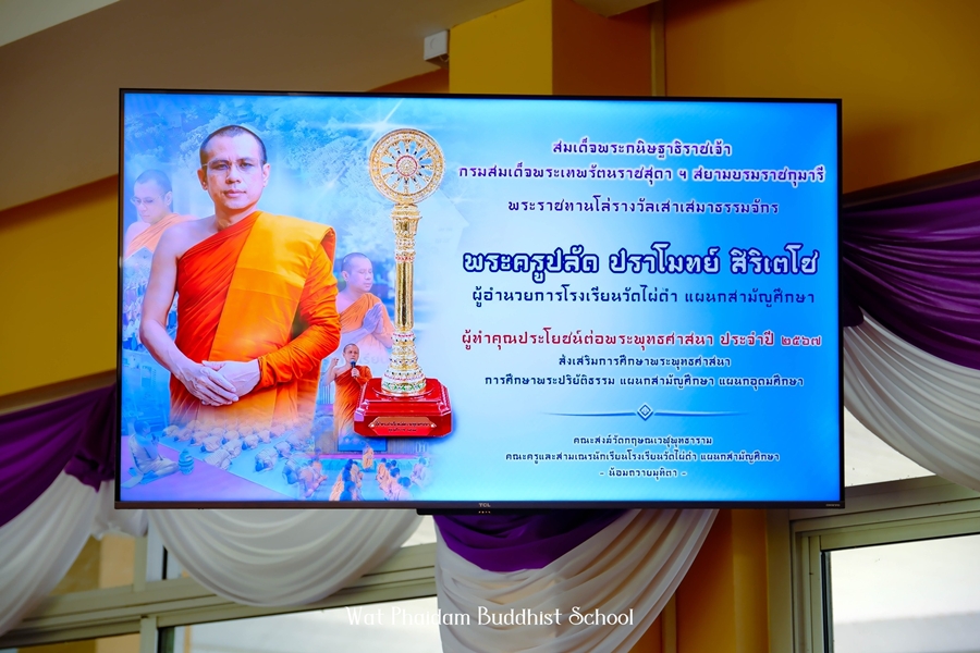 เข้ารับพระราชทานรางวัลเสาเสมาธรรมจักร ผู้ทำคุณประโยชน์ต่อพระพุทธศาสนา ประจำปี ๒๕๖๗ สาขา ส่งเสริมการศึกษาพระพุทธศาสนา การศึกษาพระปริยัติธรรม แผนกสามัญศึกษา แผนกอุดมศึกษา