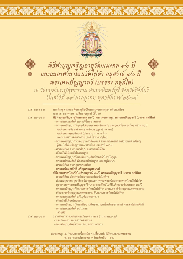 พิธีทำบุญเจริญอายุวัฒนมงคล ๙๐ ปี และฉลองศาลาโดมวัดไผ่ดำ อนุสรณ์ ๙o ปี พระเทพปัญญากวี (บรรจง กลฺลิโต)
