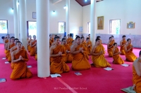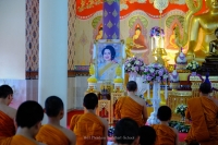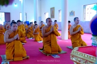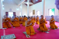 พระครูปราโมทย์ธรรมโกศล ผู้อำนวยการโรงเรียน นำพระภิกษุ-สามเณร ทำวัตรเย็น และสวดพระพุทธมนต์ เจริญจิตภาวนา อุทิศถวายเป็นพระราชกุศล สมเด็จพระนางเจ้าสิริกิติ์ พระบรมราชินีนาถ พระบรมราชชนนีพันปีหลวง