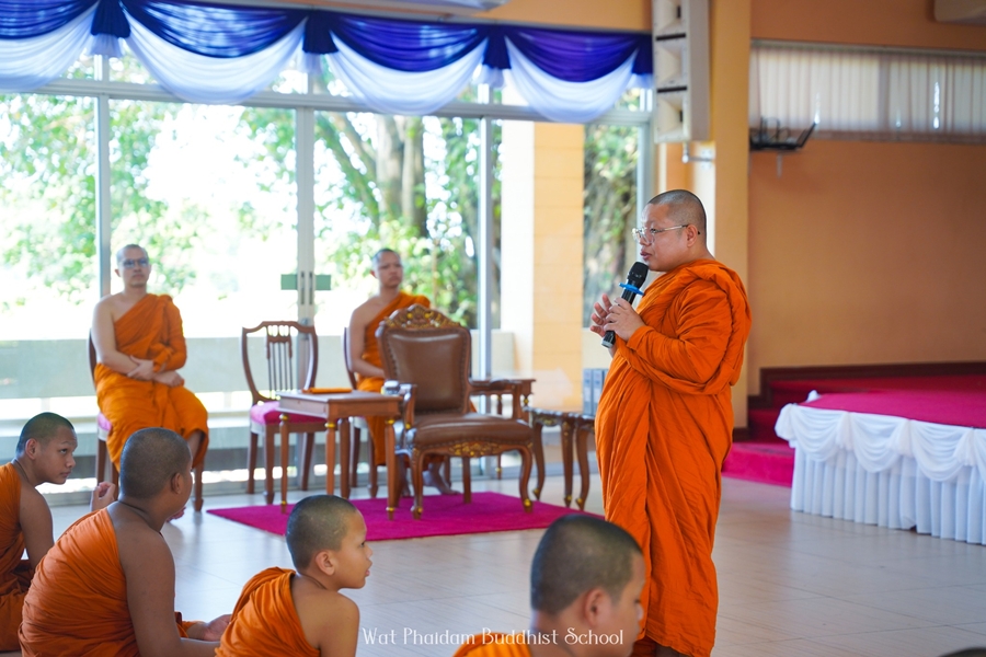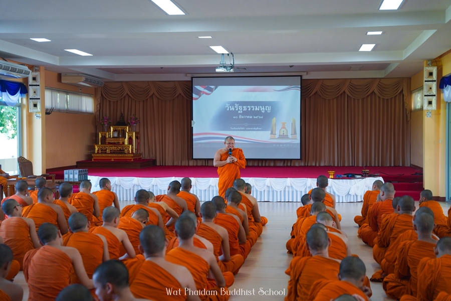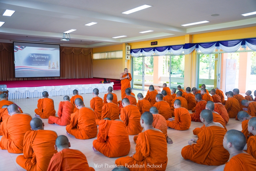 หัวหน้ากลุ่มสาระการเรียนรู้สังคมศึกษา ศาสนา และวัฒนธรรม ได้ถวายความรู้ประวัติ ความเป็นมา และความสำคัญ ของวันรัฐธรรมนูญ แก่สามเณรนักเรียน |