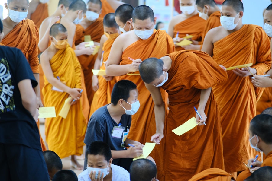 ลองมาใส่จีวร และเจอพี่เณรใจดีที่คอยสอนในช่วที่เราปรับตัว |