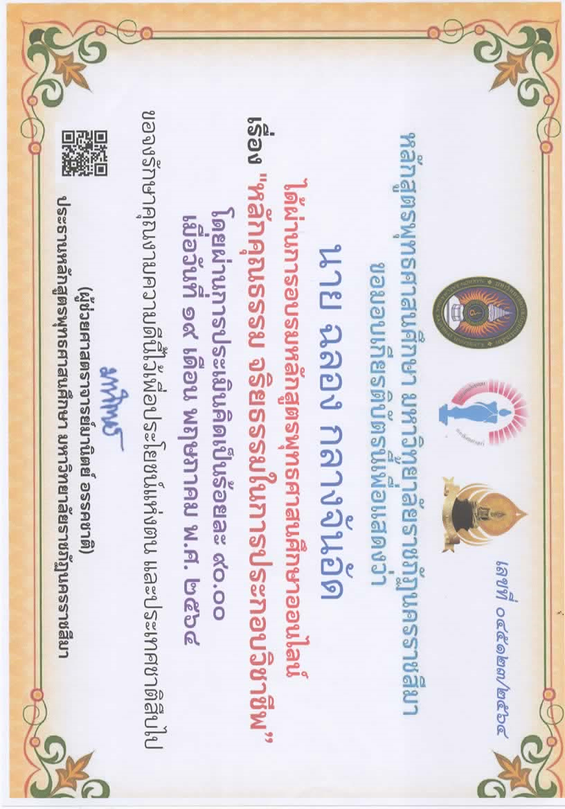 ได้ผ่านการอบรมหลักสูตรพุทธศาสนศึกษาออนไลน์ เรื่องหลักคุณธรรม จริยธรรมในการประกอบวิชาชีพ โดยผ่านการประเมินคิดเป็นร้อยละ 90.00