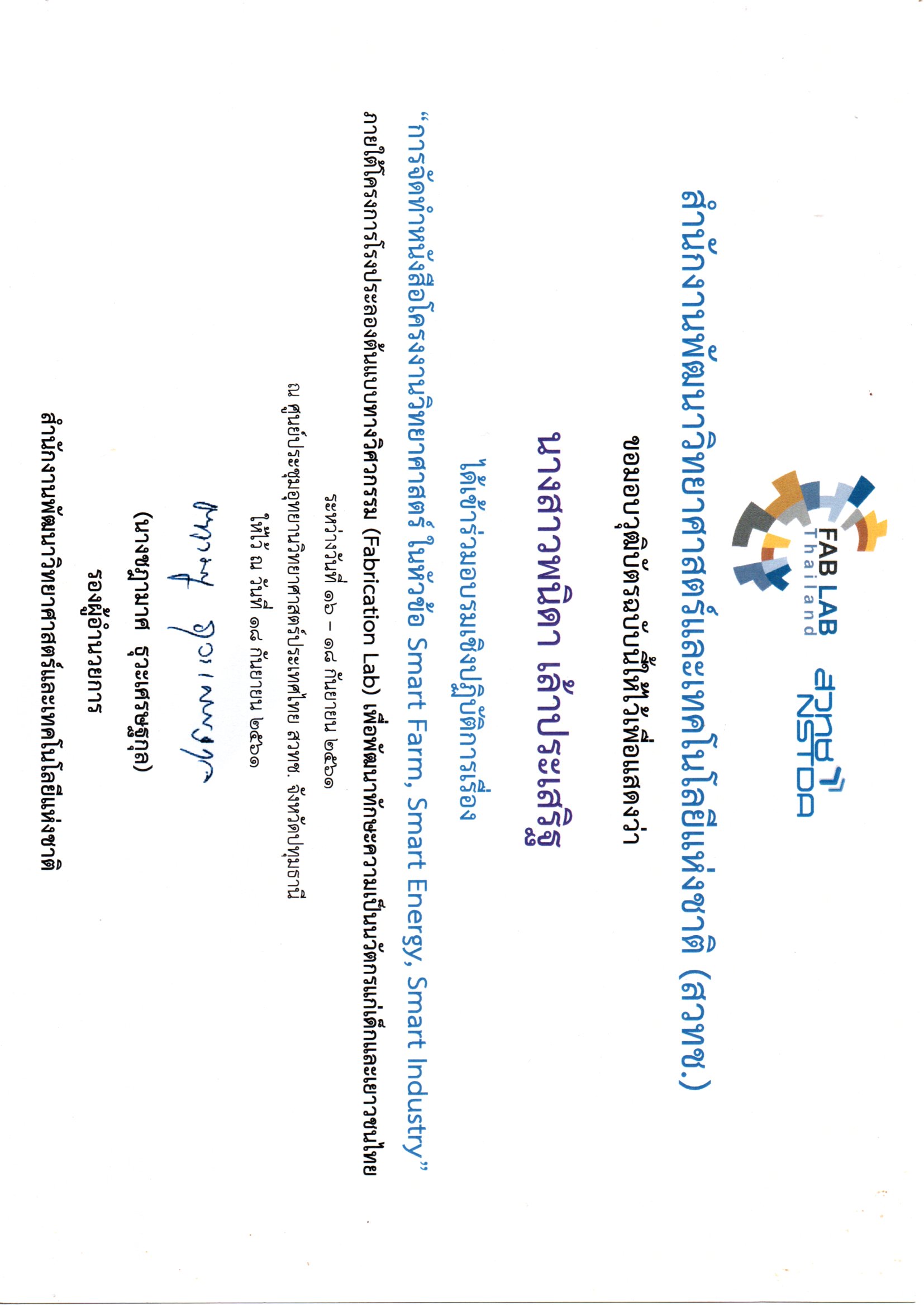 "การจัดทำหนังสือโครงงานวิทยาศาสตร์ ในหัวข้อ Smart Farm,Smart Energy, Smart Industry" ภายใต้โครงการโรงประลองต้นแบบทางวิศวกรรม(Fabrication Lab) เพือพัฒนาทักษะ ความเป็นนวัตกรแก่เด็กและเยาวชนไทย