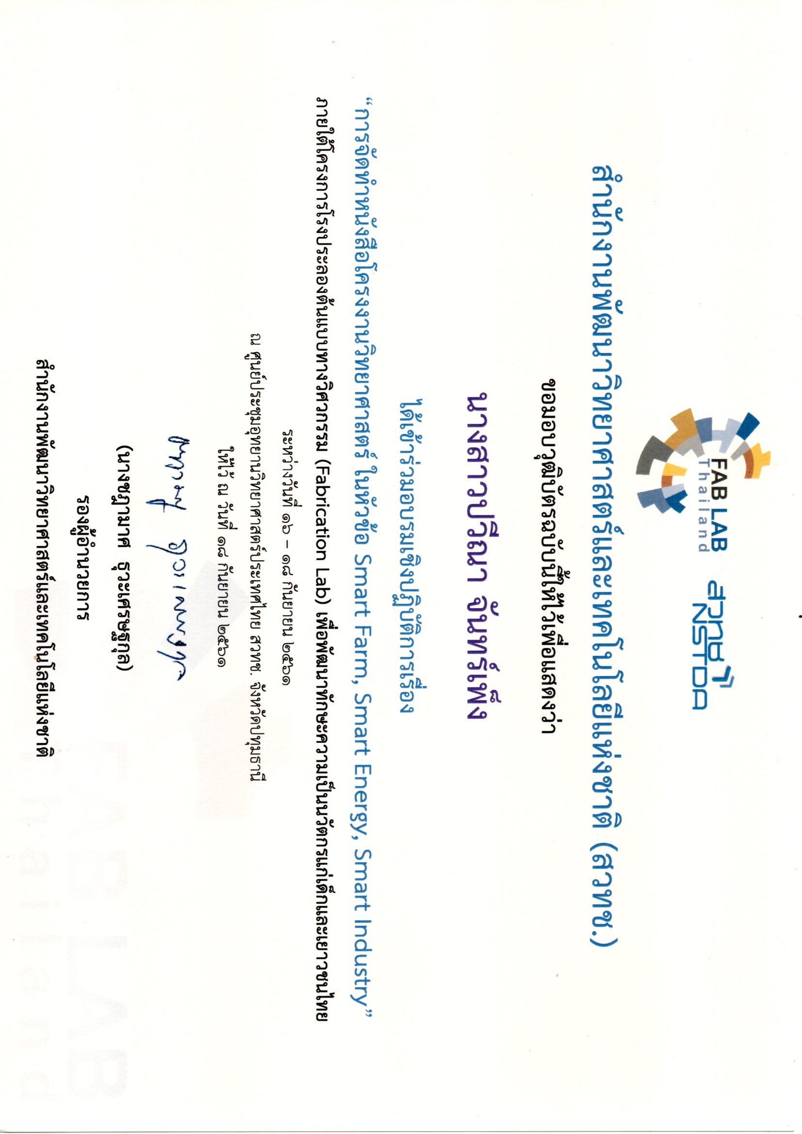 "การจัดทำหนังสือโครงงานวิทยาศาสตร์ ในหัวข้อ Smart Farm,Smart Energy, Smart Industry" ภายใต้โครงการโรงประลองต้นแบบทางวิศวกรรม(Fabrication Lab) เพือพัฒนาทักษะ ความเป็นนวัตกรแก่เด็กและเยาวชนไทย