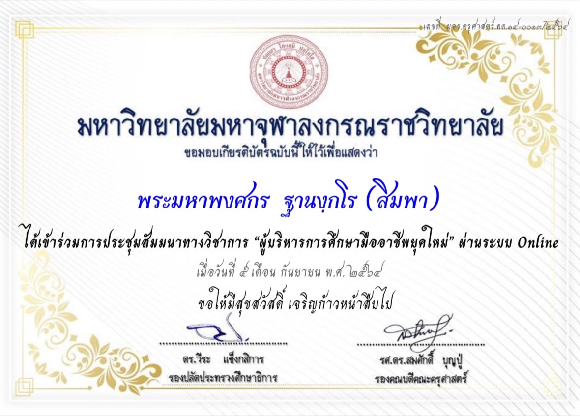 05-09-64 - ได้เข้าร่วมการประชุมสัมมนาทางวิชาการ "ผู้บริหารการศึกษามืออาชีพยุคใหม่" ผ่านระบบ Online