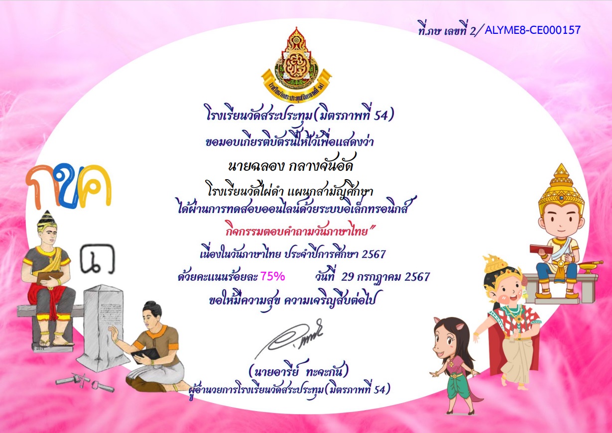 ๒๔-๐๗-๖๗ - เกียรติบัตรวันภาษาไทย