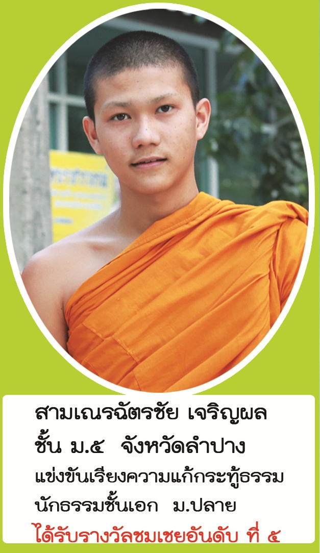 ชื่อนักเรียน : สามเณรฉัตรชัย เจริญผล