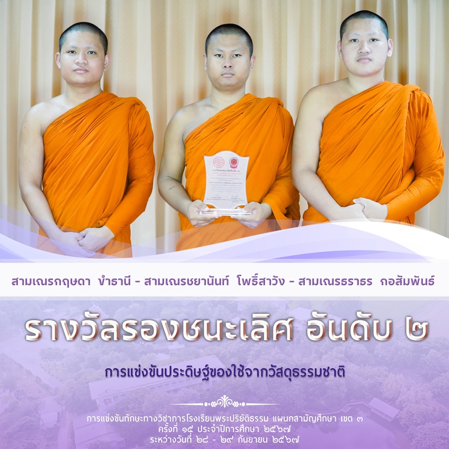 ชื่อนักเรียน : สามเณร กฤษดา ขำธานี สามเณร ชยานันท์ โพธิ์สาวัง สามเณร ธราธร กอสัมพันธ์