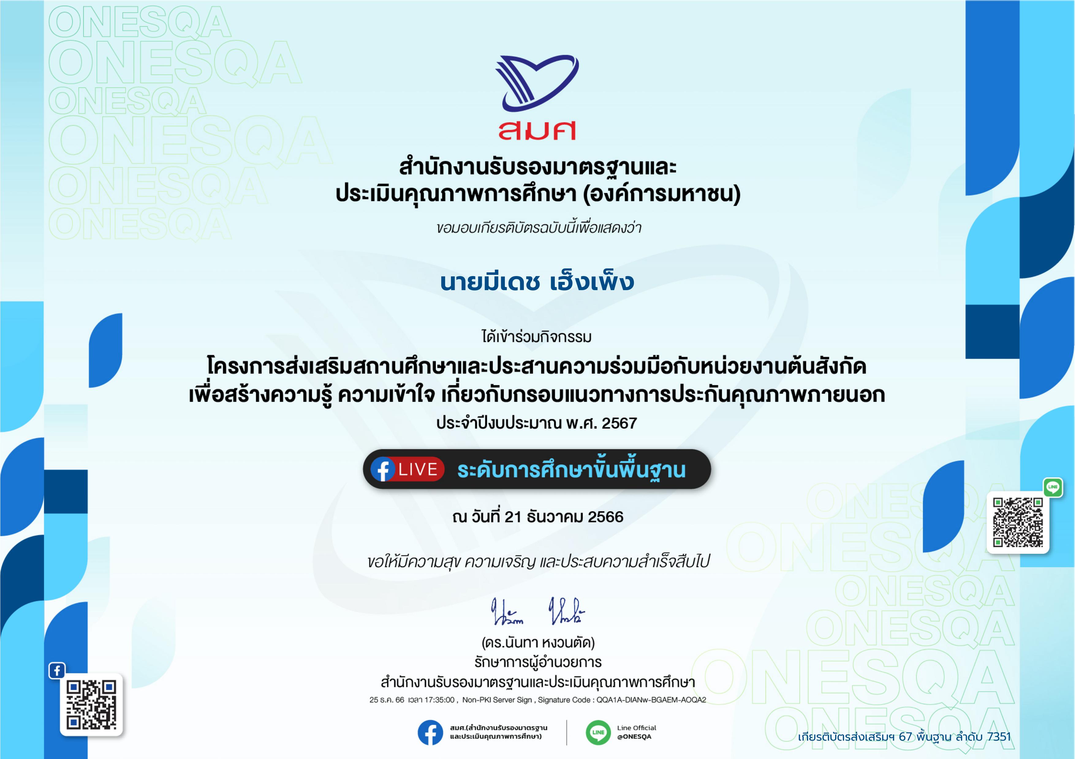 21-12-67 - โครงการส่งเสริมแนวทางการประกันคุณภาพภายนอก |