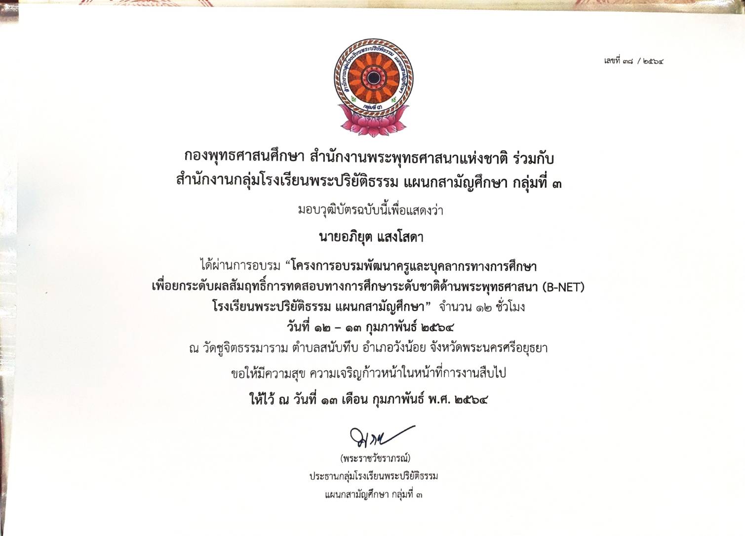 ๑๓-๐๒-๖๔ - อบรมพัฒนาครูการทดสอบทางการศึกษาระดับชาติด้านพระพุทธศาสนา(B-net) |