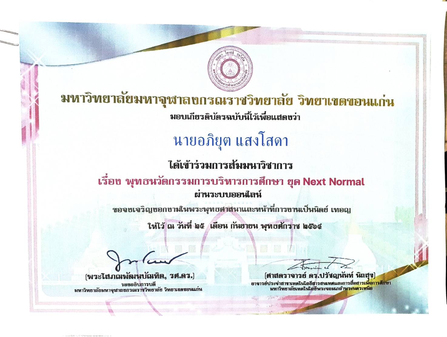 ๒๕-๐๙-๖๔ - เข้าร่วมการสัมมนาวิชาการ เรื่อง พุทธนวัตกรรมการบริหารการศึกษา ยุค Next Normal |